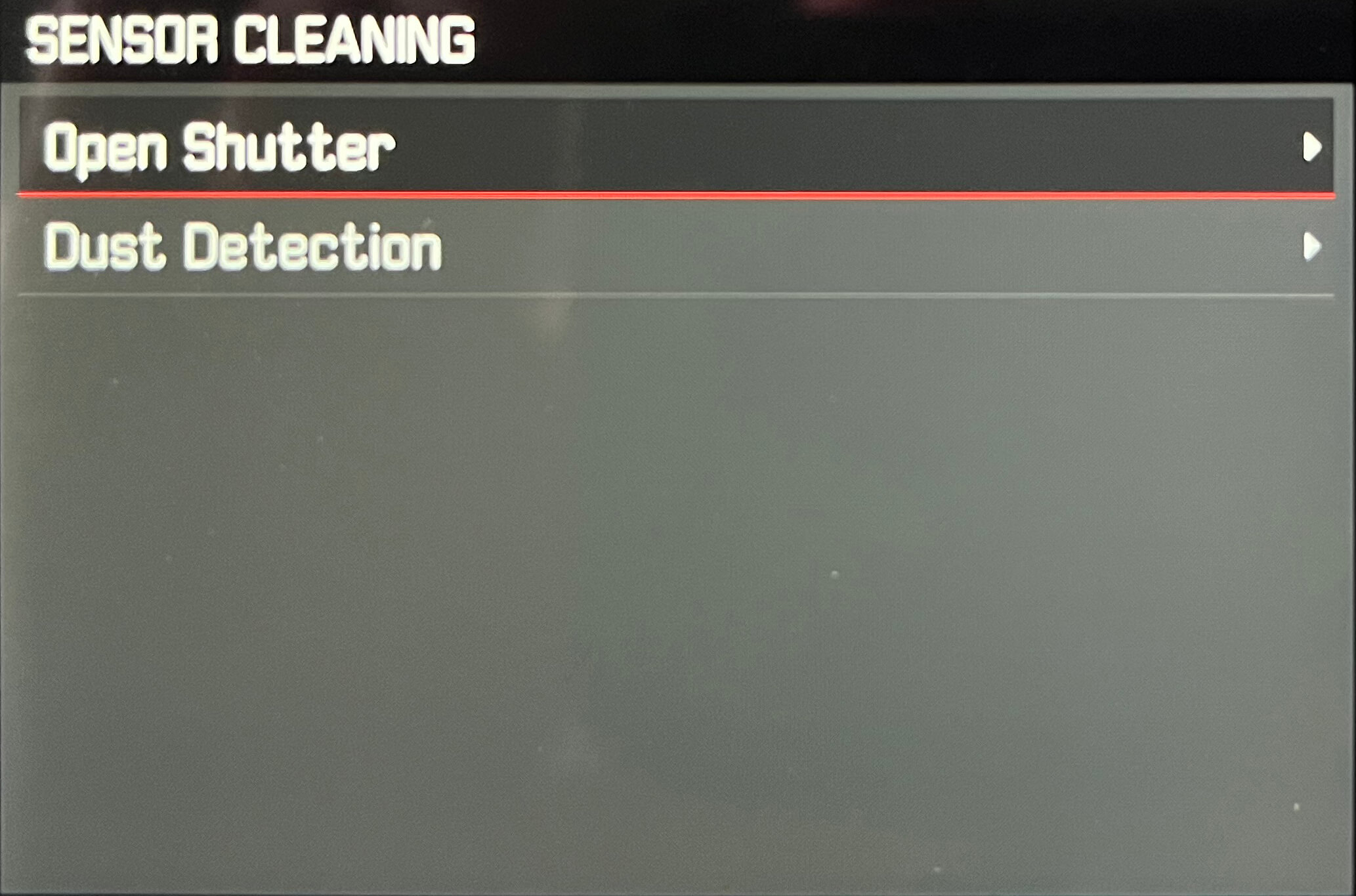 So, now you know there is dust on on the sensor of your digital Leica M, how to remove it? To do this, again got to the option Open Shutter in the Sensor Cleaning menu. The exact location of this is Main Menu > Sensor Cleaning > Open Shutter.