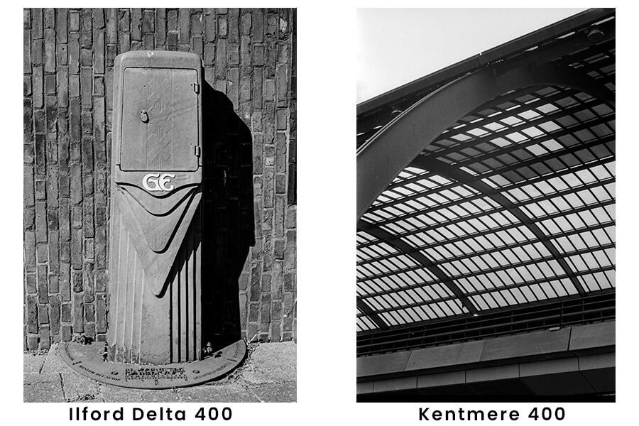 The Ilford Delta 400 image above was shot in great light conditions, resulting in a high contrast image, while the Kentmere image was shot on a cloudy day, which results in a lower contrast. Given the circumstances, I would qualify it as a medium contrast film.